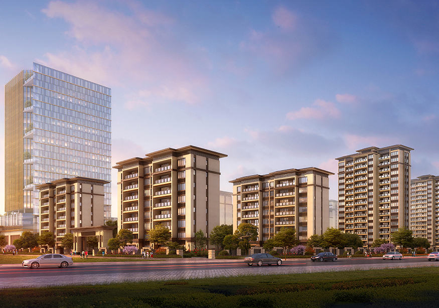 項(xiàng)目整體規(guī)劃以 " 合 " 出發(fā)遵循組團(tuán)式布局,在 " 合 " 的理念中結(jié)合現(xiàn)有水系與現(xiàn)代結(jié)構(gòu)理性交織,傳遞著蘊(yùn)含傳統(tǒng)意味的現(xiàn)代中式園林氣息, " 合 " 的整體布局可概括為一圍、三合、兩軸、四區(qū)塊。