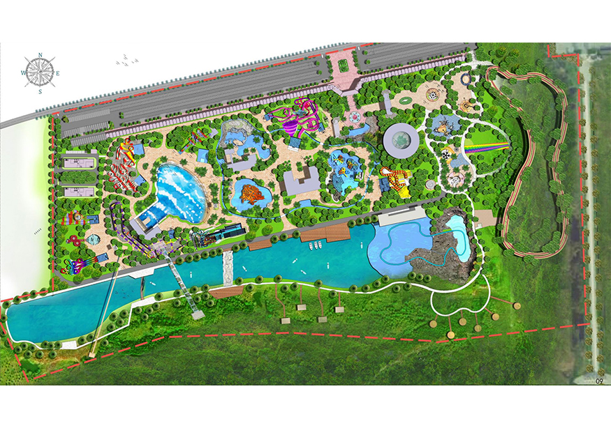 項(xiàng)目位于邳州市鐵富鎮(zhèn)艾山景區(qū)旁,北臨 310 國(guó)道,東起艾山景區(qū)北門(mén),南側(cè)邊界為山腳現(xiàn)有河道向南 60 米,總用地 43.5 公頃。項(xiàng)目游樂(lè)主體分為水公園和陸公園兩大部分,與艾山風(fēng)景區(qū)相得益彰,相互補(bǔ)充,使艾山景區(qū)可賞可游可樂(lè)可憩,打造艾山文旅版塊中的靚麗一筆。